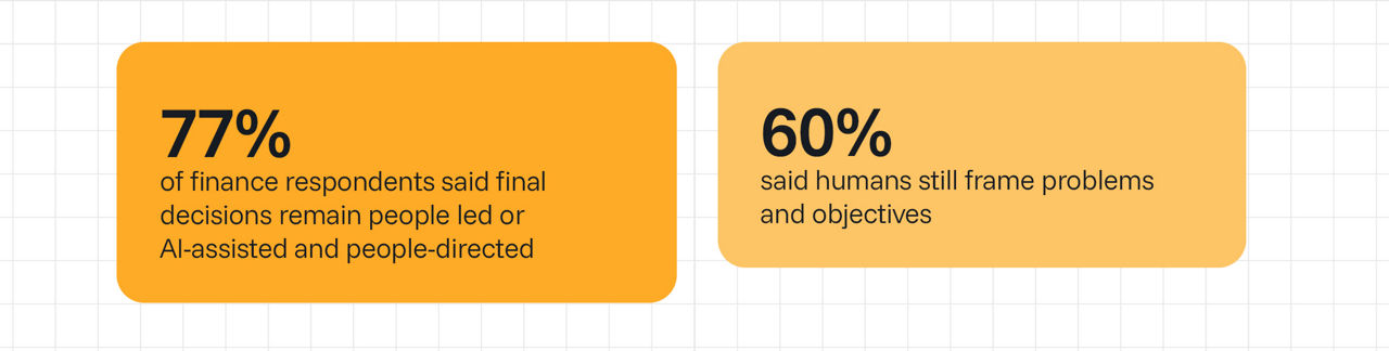 Taken together, these findings point to a clear conclusion: AI adoption has outpaced operating‑model redesign. It's not failing to deliver impact because the technology is weak. It's failing because many organizations have not rewired how work gets done. Nearly half of all finance respondents report that their organization requires moderate restructuring of governance, team structures, or decision-making to accommodate autonomous or agentic systems.
