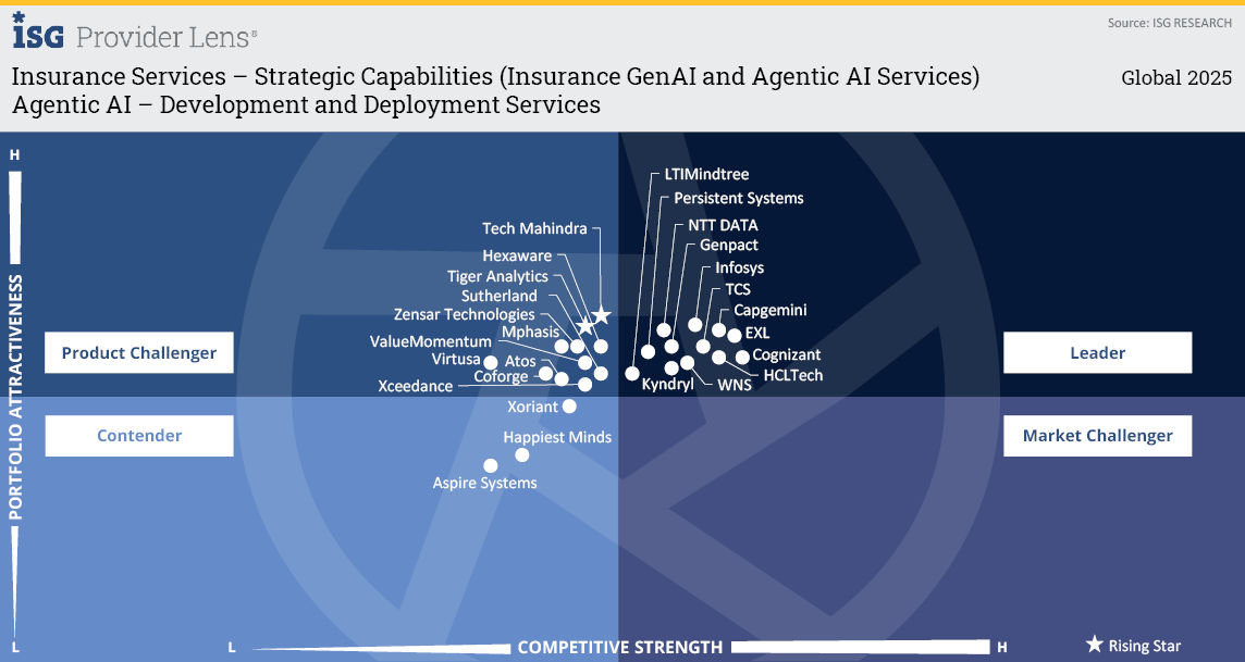 The ISG Provider Lens® 2025 study on insurance services and strategic capabilities assessed top insurance service providers on their gen AI and agentic AI development and deployment capabilities. Genpact was named a Leader in both gen AI and agentic AI quadrants, reflecting our commitment to innovation and transformative insurance solutions.
