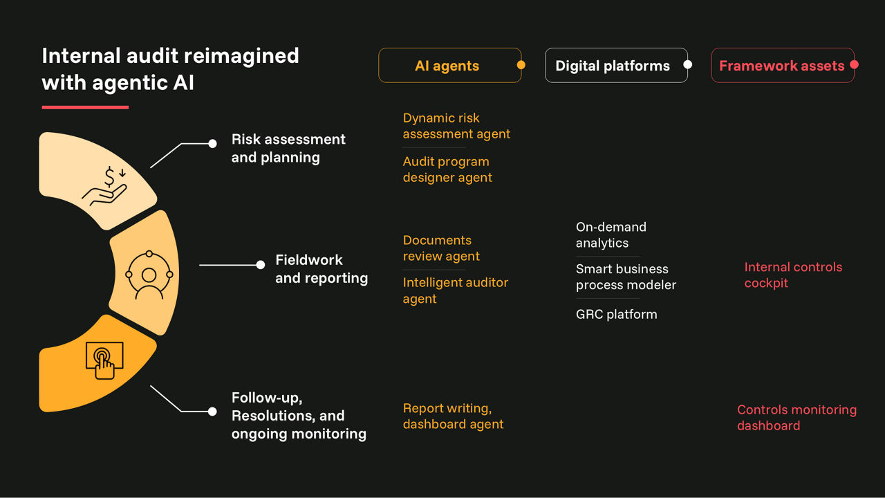 The traditional life cycle for internal controls – from scoping and testing to reporting – involves lengthy cycles of audits, gap analyses, and remediation efforts. The result? Operating loopholes and controls that can't keep up with new fraud techniques. With agentic AI, fraud indicators and outliers are flagged and anomalies are analyzed in real time.