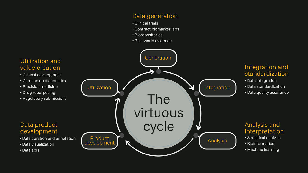 A smart, strategic approach is needed to get the most value from biomarker data. When you tackle these challenges correctly, they become opportunities for innovation. We view the journey from raw data to a strategic asset as a virtuous cycle, where each step builds on the last, driving continuous discovery.
